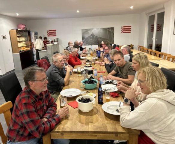 Der Muschelabend nach dem Abrudern war ein voller Erfolg. Eine warme Kartoffelsuppe und perfekt zubereitete Muscheln sorgten für gute Laune. Die lange Tafel im Vereinsraum bot Platz für alle und schuf eine familiäre Atmosphäre, in der anregende Gespräche geführt und die Erlebnisse des Jahres reflektiert wurden. Der Abend wurde mit einer gut sortierten Getränketheke abgerundet und war ein Highlight für alle, die ihn miterleben durften.