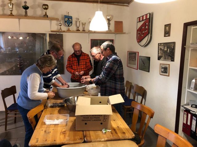 Ihren Abschluss fand die Veranstaltung beim traditionellen Muschel- und Kürbissuppenessen im vereinseigenen alten Clubraum. Bei der Zubereitung der Muscheln machten sich Uta und Henning Heinsohn, Werner Bischoff, Harald Grzybek und Gerd Kießlich verdient, weil die Muscheln vor dem Kochen erst einmal gewaschen, abgebürstet und kontrolliert werden mussten.