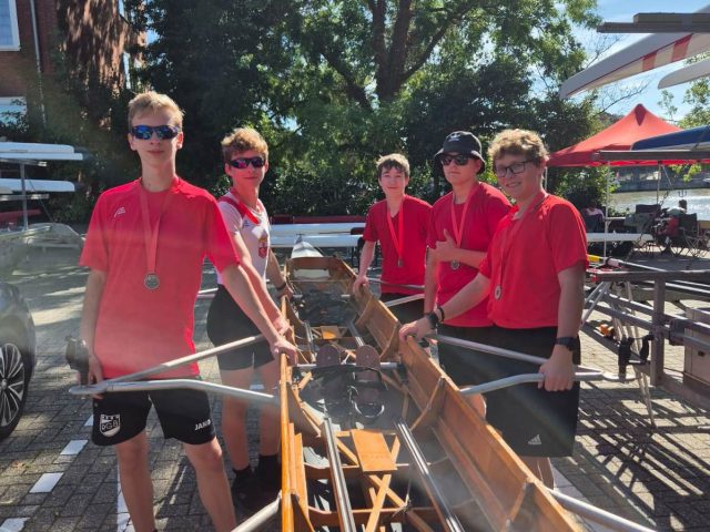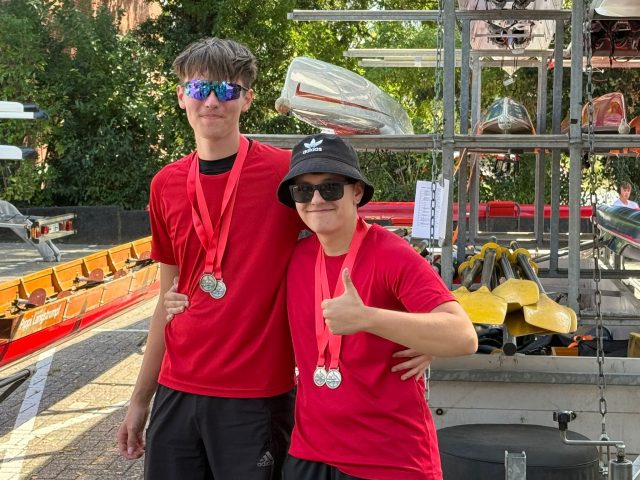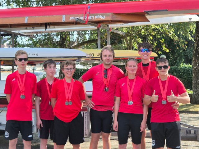 Im Jungen-Doppelzweier 13/14 Jahre waren Felix Neuhausen und Marten Herhold gemeldet, mussten jedoch kurzfristig abmelden, nachdem einer der beiden krankheitsbedingt nicht antreten konnte. Trotzdem konnte der Nachwuchs mit Technik, Einsatz und großem Teamgeist überzeugen. Trainerinnen und Trainer lobten insbesondere die ruhige Schlagtechnik und gute Wasserarbeit der jungen Bottroper. Ein besonderes Highlight war das Rennen 358 – Jungen-Vierer mit Steuermann (13/14 Jahre III). Hier bildeten Lukas Palatzky, Felix Neuhausen und Jonathan Budde gemeinsam mit Steuermann Simon Rosendahl und Chris Tausendfreund vom Bremerhavener RV das Bottroper Boot. In einem engen Lauf über 300 Meter zeigte das Quartett großen Einsatz und belegte den ersten Platz.